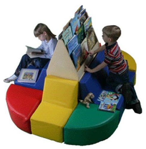 FeaturesPromote Reading And Quiet Activities.Grouping Includes 2 Sofas, 2 Chairs, And 4 Corner Wedges In Variety Of Bright PrimaryDurable 28 Oz. Flame Resistant, Expanded Vinyl.Easy To Clean And Disinfect.Stand-Alone Library Display Made Of Solid 11-Ply 5/8 Thick Birch Plywood. Grantco RS-Y-44L Youth Size Reading Station with Library?