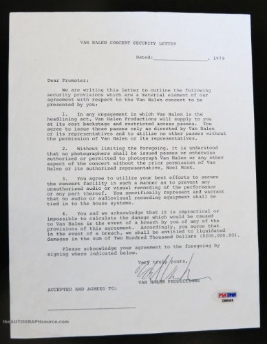 FeaturesAuthentic (be careful of fakes elsewhere).Certificate of Authenticity from independent third-party authenticator PSA/DNA.Sold by long-time legitimate Aspen, CO dealer The Autograph Source. Eddie Van Halen Signed Concert Contract?